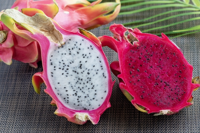 輸入ものが多く日本では一部の地域でしか栽培していません。白みの果実はさっぱりとした味わい、赤みの果実は甘味が強めで、そのまま食べたりサラダに添えて食べることが多いです。宮古島に行ったら食べてみたい一品。