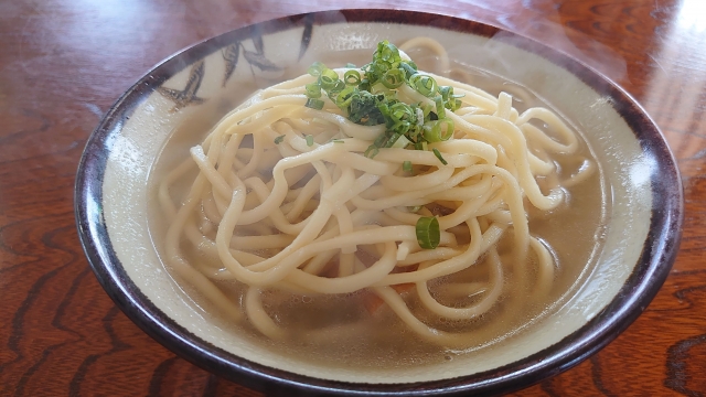 豚肉やかまぼこなどの具材を麺で隠してあるのが宮古そば。あっさりとしたスープはどこか懐かしい味がして麺との相性は抜群と評判です。