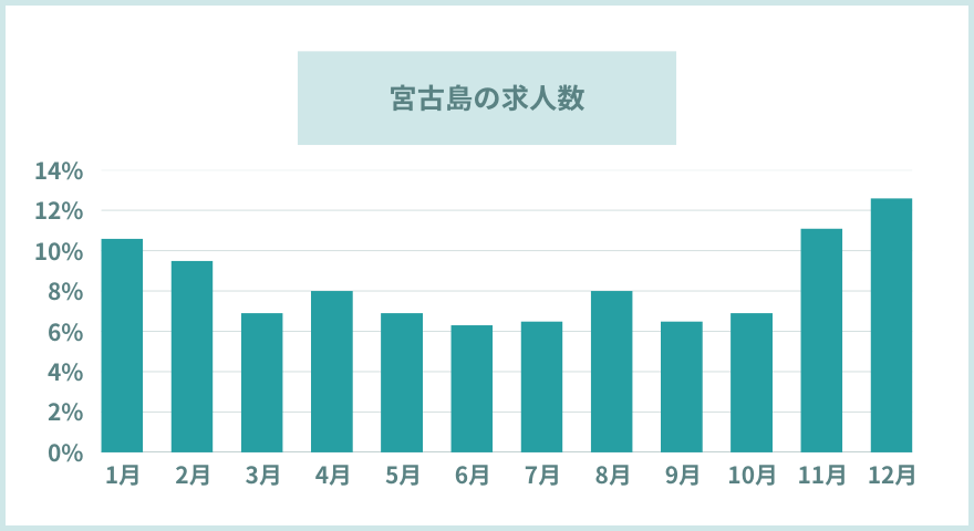 宮古島といえば夏のイメージが強いですが、意外にも求人数が増えるのは12月以降であることがわかりました。