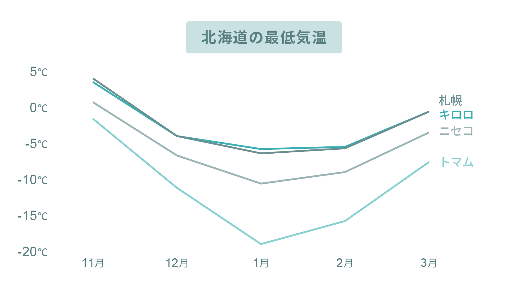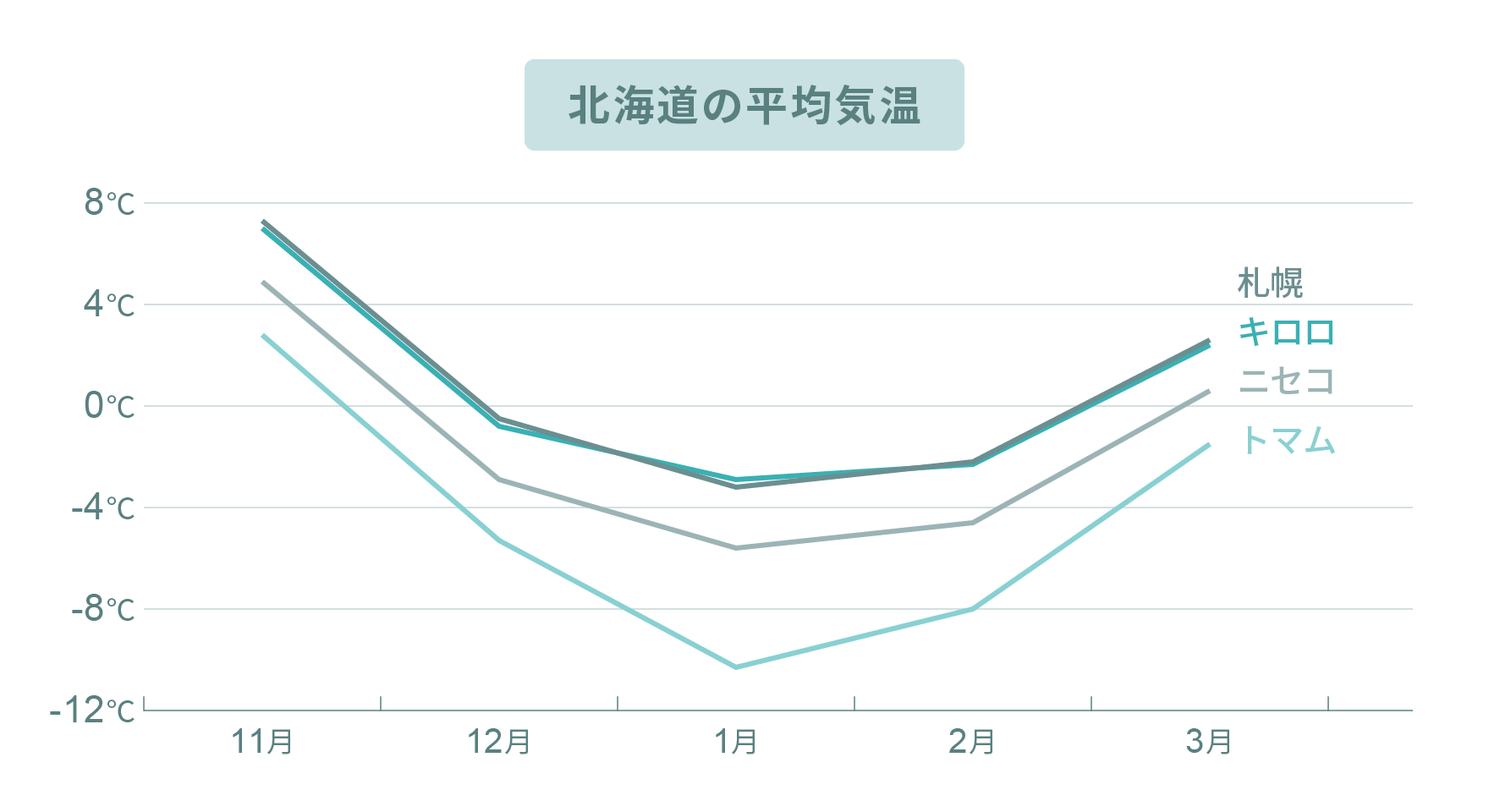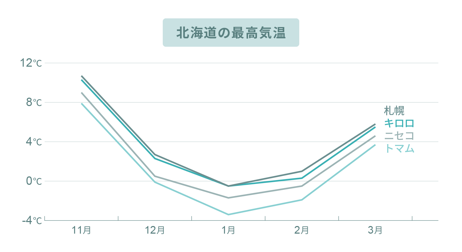 北海道の月別の平均気温はこちら