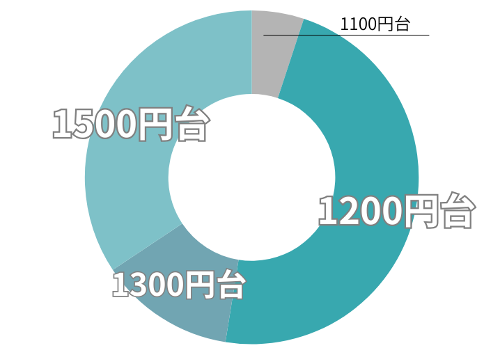 時給別に見ると、1200円台が48%、1300円以上が47%とほぼ同じ割合です。