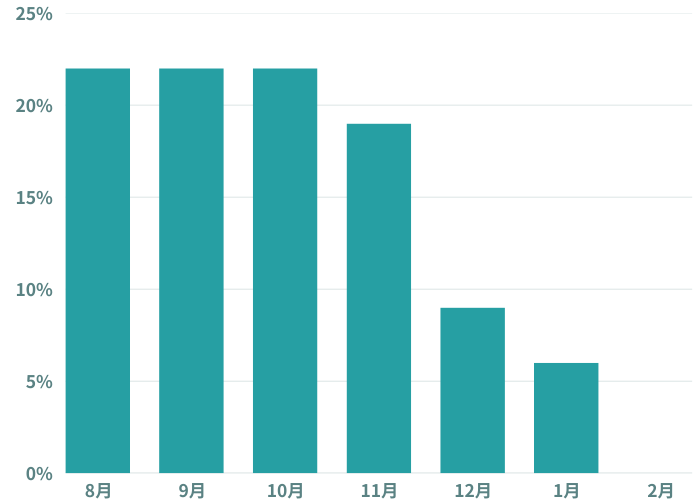 採用する側も早めに人員を確保したいと考えているため、8月〜9月に応募すると、競争率が比較的低く採用されやすいです。