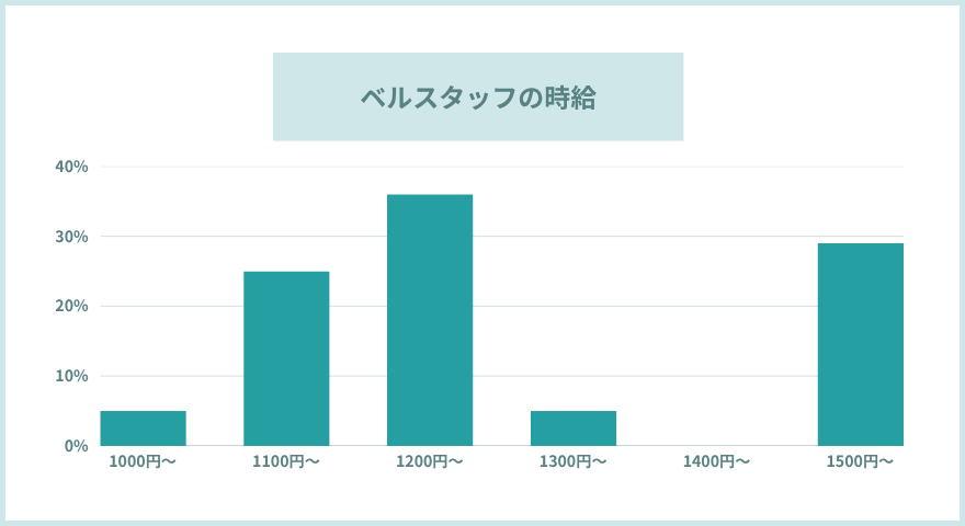 時給の内訳を見ると、時給1200円台が最も多く約36%を占めます。