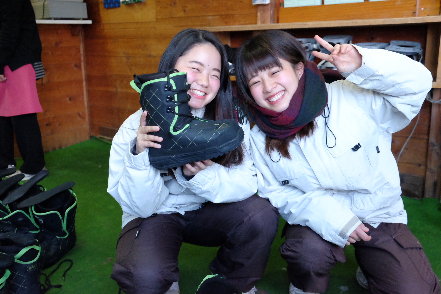 サイズにあった道具を貸出すだけではなく、初心者の方であればブーツの履き方や、ビンディング(板とブーツの接続部分)の使い方も説明をします。