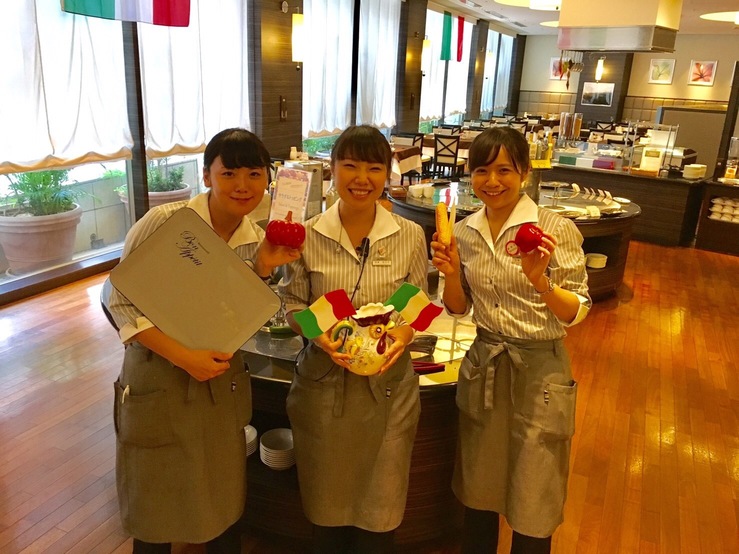 開店と同時にお客様をご案内し、バイキングのルールを説明します。そのほか料理の補充や使用したお皿を片付けます。