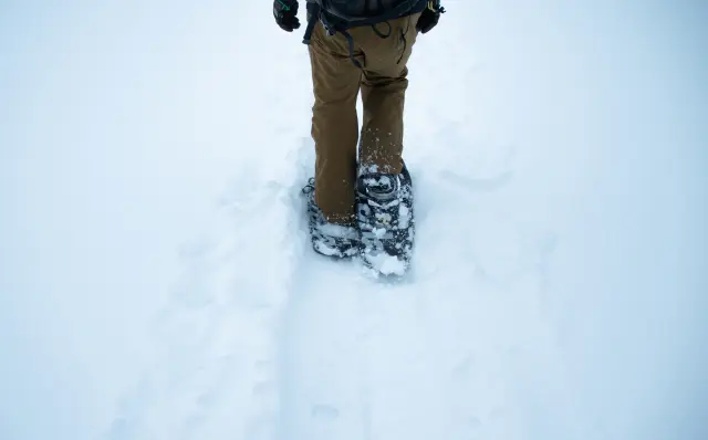 スノーシューとは、雪の上を沈まずに歩くための道具で、西洋版のかんじきのようなものです。