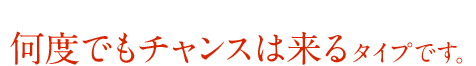 このタイプを選んだあなたは、再び始めるチャンスが巡ってきました。「もう恋なんてしないなんて~いわないよ、絶対~~~♪」と唄ったマッキーの歌のように、再出発をするタイミングが来ています。またご縁は恋愛だけには限らないもの。就活含めた再挑戦のチャンスが巡ってきています。