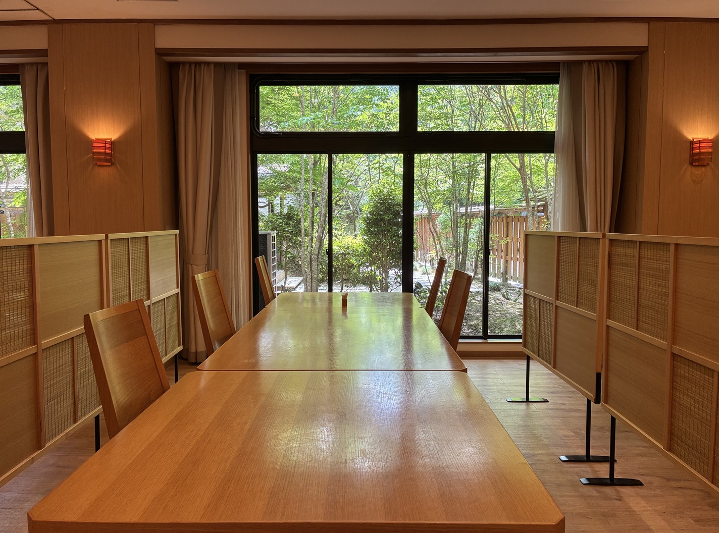 中抜けシフトで掃除が終わったら一旦寮に帰り、その後は自由時間です。夕方から再度出勤し、夕食の仕込み作業と配膳をします。懐石料理のため、1品ずつ料理の説明を行いました。