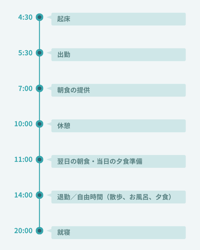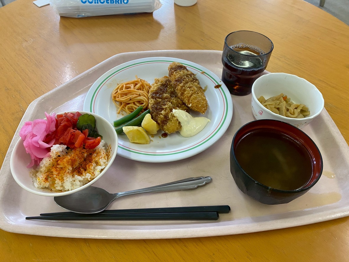 食事は、従業員用の食堂で済ませていました。日替わりのメニューはとてもおいしく、毎日とても楽しみでした!特においしかったのが唐揚げやカツなどの揚げ物系です!ボリュームたっぷり、サクサクの状態で食べられて、すごく幸せでした。