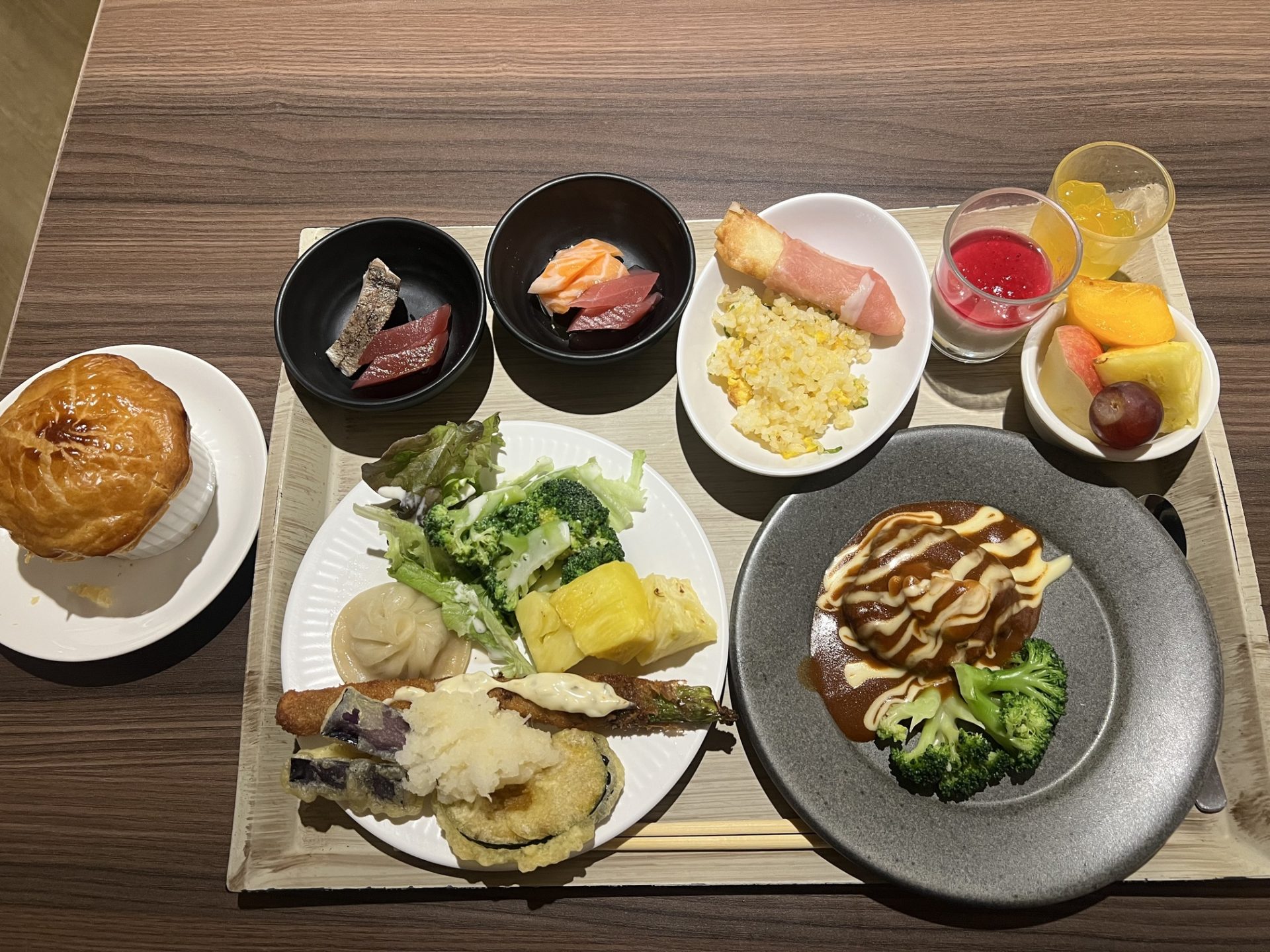 昼食は朝食バイキングの料理、夕食は夕食バイキングの料理をいただいていました。和食、中華、洋食と種類は多かったです。スペインフェアや九州フェアもあり毎日食べても飽きなかったです。食べるのが大好きな自分にとって最高すぎました。