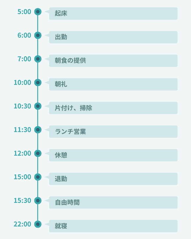 しかし、朝食提供の時間は決まっているため、終わらないほどの仕事量ではなかったです。